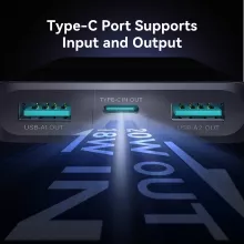• Multi-Device Charging: Equipped with three output ports, including dual USB-A and Type-C, allowing you to charge up to three devices simultaneously.