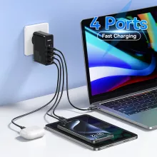 - Multi-Device Charging: Equipped with 2 Type C outputs and 2 USB outputs, this charger supports charging multiple devices at the same time without reducing speed.