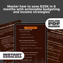 With zero fluff and 100% strategy, you’ll get mindset shifts, real-world math, practical tools, and a clear savings path you can follow with confidence. Your $20K goal is bold—but with this blueprint, it’s absolutely achievable.