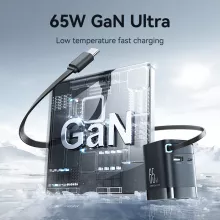 65W GaN Charger with Retractable USB-C Cable for iPhone, iPad, and Laptops