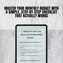 Ready to take charge of your money without the overwhelm? Download Budget Like a Boss: Your Step-by-Step Monthly Budget Checklist today and learn how to plan a monthly budget that sticks. Your stress-free financial future starts with one simple checklist.