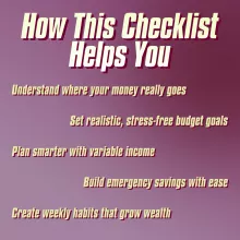 This checklist is perfect for students, freelancers, families, or anyone ready to make smarter financial choices. Whether you’re saving for a home, paying off debt, or simply learning how to budget your income effectively, this guide meets you where you are and helps you level up.