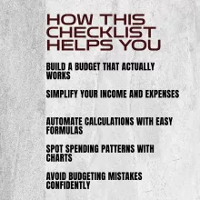 Unlike generic budget templates, this checklist doesn’t just give you a format—it walks you through the full journey of understanding, creating, and mastering your budget spreadsheet. It’s more than a tool; it’s a step-by-step game plan to financial clarity. From common pitfalls to visual insights and advanced tips, it grows with your financial journey.