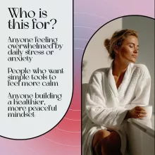 - Teaches calming techniques you can practice anytime—at home, at work, or on the go