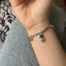 This double-layer bracelet with moon, star, and astronaut pendants is absolutely delightful! What's great about it is the flexibility in how you can wear it. Whether you stack both layers together or wear them separately, it looks adorable either way. It's the perfect mix of lightweight and durability, making it comfortable to wear all day without any hassle. The design brings a smile to my face every time I look at it. π