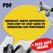 Struggling with how to motivate low performers on your team? You’re not alone. Whether you manage a small team or lead a larger department, underperformance can drain productivity and morale. That’s why we created the Checklist: Ignite Motivation — Your Step-by-Step Guide to Energizing Low Performers — a powerful digital download packed with actionable steps to transform disengaged employees into proactive, goal-crushing contributors. No fluff, just practical tools to help you lead with purpose and impact.