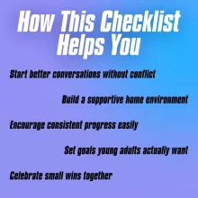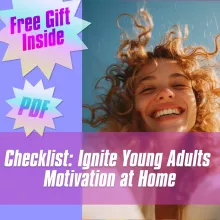 Download your copy of Checklist: Ignite Young Adults Motivation at Home now and start helping your young adult uncover their potential—one conversation, one small win, and one goal at a time. Your roadmap to building lasting motivation and confidence begins here.