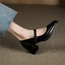 Our Mary Janes feature premium materials including kid suede upper, pigskin lining, and a soft sheepskin insole, ensuring your feet enjoy unparalleled comfort all day long. The square toe and thick square heel not only add to the visual appeal but also provide stability and support, making them ideal for extended wear. The rubber outsole offers durability and slip resistance, ensuring you walk with confidence, no matter where you go.