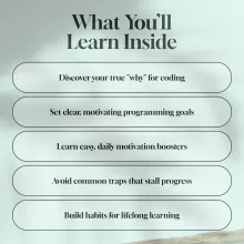 - Chapter 1: Why Motivation Matters in Learning Programming – Understand what holds most learners back and how to stay motivated through the ups and downs of your coding journey.