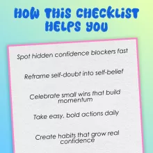 - 🔍 Chapter 1: Spot What’s Holding You Back – Get honest about your confidence blocks and track your “confidence killers.”