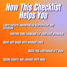 As someone who constantly overthinks every interaction, this checklist was exactly what I needed. I love how it combines mindset work with conversation skills and body language tips - it's like having a personal coach guiding you through each step.