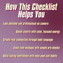 This checklist doesn’t just tell you what to do—it reminds you how to show up. Unlike generic video tips or lengthy guides, it’s punchy, memorable, and designed to become part of your daily routine. It’s the digital confidence coach you didn’t know you needed.