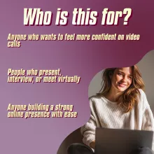 Not just a reminder to “sit up straight”—this is your new pre-call ritual. With clear steps for before, during, and after your calls, this tool helps you build lasting habits that elevate your online presence and boost your confidence, one click at a time.