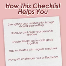 Unlike generic relationship worksheets, this checklist focuses on practical goal-setting that’s both heart-centered and results-driven. It’s not just about talking—it’s about creating a roadmap for shared success with real, actionable steps.