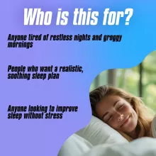 No fluff, no complicated science—just real, actionable steps laid out in a clear, easy-to-follow format. It’s your sleep roadmap, broken into bite-sized sections that help you build a routine you’ll actually stick with.