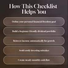 It’s more than just a checklist—it’s a powerful tool for mapping your dividend journey from zero to financial freedom through dividend investing. No fluff. Just a focused plan you can follow.