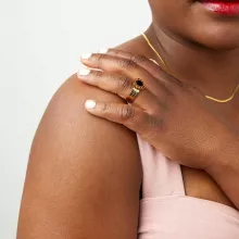 This ring is a true treasure! From the moment I laid eyes on it, I was captivated by its elegant design and the way the materials blend together to create something so beautiful and unique. It has a certain allure that draws attention without being overly flashy. Wearing it feels empowering, as if it adds a touch of class to my entire demeanor. The quality is outstanding, with no signs of wear or tarnish even after several months. It's versatile enough to pair with anything from jeans and a t-shirt to a formal evening gown. Additionally, the comfort factor is unparalleled; I can wear it all day without even noticing it's there. Every time I wear this ring, I feel like I'm making a statement of style and elegance