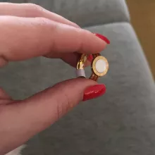 I recently treated myself to this ring and couldn't be happier. The design is absolutely stunning, combining a sleek metallic look with a gorgeous shell-like finish. It's incredibly well-made and feels very durable, yet it has a delicate appearance on my finger. I love how it catches the light and adds a touch of elegance to any outfit. It's definitely a piece that gets noticed and I've received so many compliments on it. I'm so pleased with this purchase and feel like it's a timeless piece that I'll wear for years