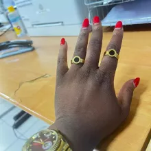 I must say, this ring exceeded my expectations. The design is not only stylish but also timeless, striking the perfect balance between trendy and classic. The workmanship is meticulous, with attention paid to every detail, resulting in a piece that's both sturdy and visually stunning. It's the kind of ring that sparks conversation, as it stands out with its unique blend of materials and artistry. I appreciate how it feels on my finger, comfortable and secure, yet it has a presence that's undeniably impactful. It's become my go-to accessory for all occasions, enhancing my outfits with its subtle elegance. I'm beyond satisfied with this purchase and would recommend it to anyone looking for high-quality, stylish jewelry
