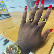 This ring is a true treasure! From the moment I laid eyes on it, I was captivated by its elegant design and the way the materials blend together to create something so beautiful and unique. It has a certain allure that draws attention without being overly flashy. Wearing it feels empowering, as if it adds a touch of class to my entire demeanor. The quality is outstanding, with no signs of wear or tarnish even after several months. It's versatile enough to pair with anything from jeans and a t-shirt to a formal evening gown. Additionally, the comfort factor is unparalleled; I can wear it all day without even noticing it's there. Every time I wear this ring, I feel like I'm making a statement of style and elegance