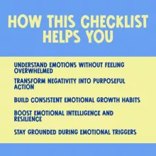 This guide is perfect for anyone ready to grow through their emotions instead of being ruled by them. Ideal for self-help lovers, therapists, emotional wellness coaches, or anyone curious about how to use your emotions to grow. Whether you’re just starting or already on a personal development path, this checklist meets you where you are.