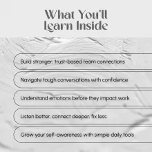 - Gain real-life tools to manage emotions and build meaningful work relationships
