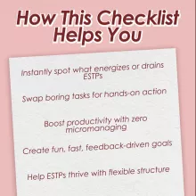 This checklist is ideal for anyone wondering how to motivate ESTP individuals effectively. Whether you’re a coach, manager, educator, or an ESTP looking to supercharge your own momentum, this guide meets you where you are—no theory, just action.