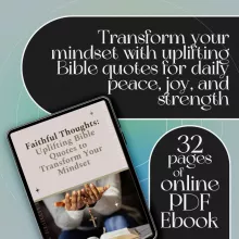Feeling overwhelmed, anxious, or in need of a spiritual boost? Let God’s Word be your daily source of strength and hope with Faithful Thoughts: Uplifting Bible Quotes to Transform Your Mindset. This thoughtfully crafted eBook brings together powerful Bible quotes for positive thinking to help you shift your perspective, deepen your faith, and embrace God’s peace—even in difficult moments. Whether you’re looking for encouragement, affirmation, or a fresh way to renew your mindset through scripture, this digital resource will meet you where you are and lift you higher.