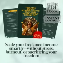 If you’re a freelancer ready to break free from the hustle-for-every-dollar cycle, the Freelance Growth Blueprint: How to Scale Your Income Without Burning Out is your step-by-step roadmap to higher earnings, smarter systems, and lasting freedom. This digital eBook is designed for ambitious creatives, service providers, and solo professionals who want to scale their freelance income while protecting their time, energy, and passion. Whether you’re just starting to gain traction or you’re drowning in client work, this guide will show you how to grow without grinding harder.