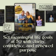 This guide is perfect for anyone in their 50s seeking to rediscover purpose, shift gears with confidence, or simply figure out how to set life goals at 50. Whether you’re newly retired, launching something new, or exploring what matters most, this resource helps you take meaningful next steps without the fluff.