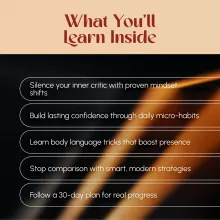 - Chapter 2: The Confidence Killers – Learn to silence your inner critic, stop comparing yourself online, and avoid the top 5 confidence-crushing mistakes.