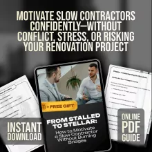 Don’t let your project drag on another day. With From Stalled to Stellar: How to Motivate a Slow Contractor Without Burning Bridges, you’ll have everything you need to motivate with confidence, protect your investment, and move forward with peace of mind. Download your copy today and turn your stalled project into a stellar success!