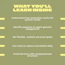 - Chapter 1: Understanding Motivation Through the Autistic Lens – Learn what motivation really means for autistic adults, including how sensory processing, routines, and unique strengths play a role.
