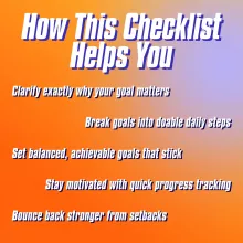 Just downloaded this checklist and it's already making a difference! I love how it helps me define my why for each goal, keeps me motivated. Plus, breaking down big goals into manageable steps is such a game-changer 🙌.