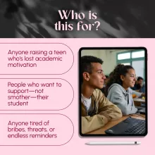• Created specifically for parents who want to know how to motivate teenager to get good grades without stress or power struggles