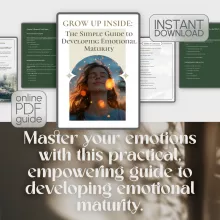 Ready to stop reacting and start responding with purpose? Grow Up Inside: The Simple Guide to Developing Emotional Maturity is your go-to digital guide for learning how to develop emotional maturity with clarity and confidence. Whether you’re navigating relationships, managing stress, or trying to understand your triggers, this guide gently walks you through the emotional development you may have missed growing up—and offers tools to catch up now. With relatable examples, practical exercises, and a friendly, no-fluff tone, this digital download will change the way you experience your emotions and your life.