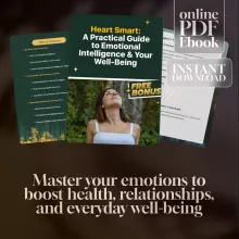 Feel overwhelmed, disconnected, or burnt out? “Heart Smart: A Practical Guide to Emotional Intelligence & Your Well-Being” is a thoughtfully designed eBook that helps you reconnect with your inner world—so you can thrive emotionally and physically. Whether you’re new to emotional wellness or already exploring the mind-body connection, this digital guide gives you the tools to understand yourself better, strengthen relationships, and boost overall health through emotional intelligence and health practices that truly make a difference.