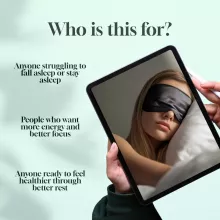 - Created for anyone struggling with sleep – whether it’s trouble falling asleep, staying asleep, or waking up tired