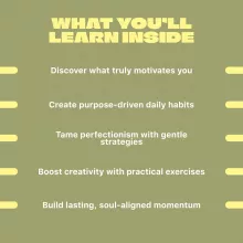 • Chapter 3: Overcoming Common Motivation Challenges — Tackle overwhelm, perfectionism, and self-doubt with supportive tools and daily prompts.
