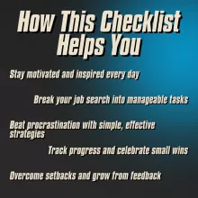 This checklist gave me a much-needed boost in my job search. It would be even better if there were some tips for interviews included. Still, I feel more confident now!