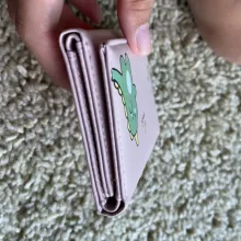 A very cute wallet 🫶🩷 It's exactly what I wanted and what I was looking for! I'm personally not a big fan of chunky wallets so I was looking for something small and cute 🩷 The color is pretty and the little dinosaur drawing is a pretty decoration. The quality feels about right for the price 🩷. I'm truly satisfied with this purchase!