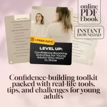 Are you ready to stop second-guessing yourself and finally step into your full potential? Level Up: Confidence Boosting Activities for Young Adults Who Want to Shine is your go-to digital download for building confidence that sticks. Designed especially for people in their late teens and twenties, this engaging, easy-to-follow eBook offers a powerful mix of insight, real-life stories, and practical exercises to help you grow from hesitant to unstoppable. Whether you’re preparing for college, entering the workforce, or trying to find your voice in social settings, this guide is your confidence-building companion.