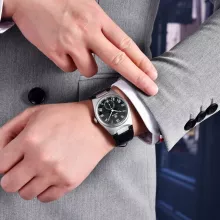 This watch strikes the perfect balance between rugged durability and classic sophistication. The water resistance is a practical feature that allows me to embrace life's adventures without hesitation, while the leather strap ensures I always look my best. It's a reliable, handsome accessory that has quickly become a staple in my daily routine.