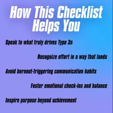 Unlike generic guides, this checklist speaks the unique language of the Enneagram 3—acknowledging their inner drive and balancing it with emotional wellness. It’s more than just tips; it’s a tailored strategy that supports their journey to success while reminding them they’re more than their achievements.
