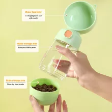 - Leak-Proof and Easy to Use: The specially designed cap ensures no spills or leaks, while the simple push-button mechanism lets you quickly dispense water and food.
