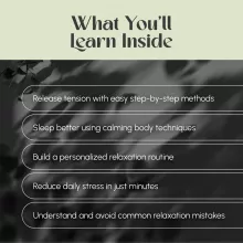 - Quick and easy methods to relax your body—no special equipment or prior experience needed.