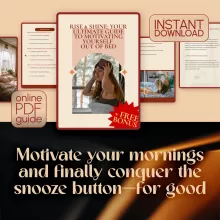 Struggling to get out of bed every morning? You’re not alone—and it’s not just about willpower. Rise & Shine: Your Ultimate Guide to Motivating Yourself Out of Bed is the digital guide designed to help you finally break free from the snooze cycle and start your mornings with purpose. Whether you’re battling morning grogginess, emotional fatigue, or simply lacking inspiration, this empowering resource offers practical tools, real-life examples, and science-backed strategies to help you rise with motivation and confidence. It’s time to ditch guilt-driven mornings and discover how to motivate yourself to get up with clarity and intention.