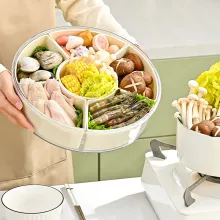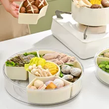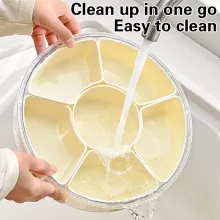 Keep your favorite snacks fresh, organized, and easy to access with this versatile round divided serving tray. Designed with six spacious compartments and a secure lid, it’s the perfect solution for storing and serving a variety of foods, from fruits and nuts to chips and dips. Whether you’re hosting a gathering, preparing for a picnic, or enjoying a cozy evening at home, this snack tray is a must-have addition to your kitchen.