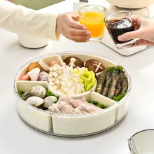 Upgrade your food storage and serving experience with this round divided snack tray. Its versatility, durability, and sleek design make it an essential item for any kitchen or event. Get yours today and enjoy organized, fresh snacks anytime, anywhere!