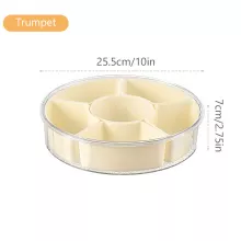 Keep your favorite snacks fresh, organized, and easy to access with this versatile round divided serving tray. Designed with six spacious compartments and a secure lid, it’s the perfect solution for storing and serving a variety of foods, from fruits and nuts to chips and dips. Whether you’re hosting a gathering, preparing for a picnic, or enjoying a cozy evening at home, this snack tray is a must-have addition to your kitchen.
